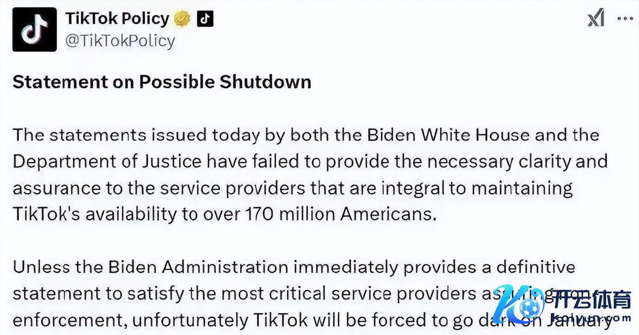 2024年4月,拜登总统签署了一项法案,章程TikTok必须在2025年1月19日之前转手给非中国的公司,若不本质,这款软件在好意思国就得濒临禁用的风险。